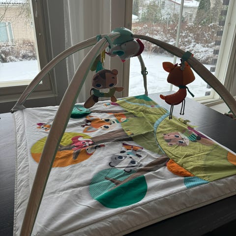 Meidän lapsi tykkäsi tästä kovasti. Yhdellä lapsella ollut, erittäin siisti ja täysin toimiva. Vastasyntyneestä eteenpäin. 2in1-toimintapeitto, jota voidaan käyttää lelukaaren kanssa tai ilman. Elektroninen lintu musiikkitehosteilla, 30 min musiikkia ja 20 erilaista melodiaa. Muut lelut auttavat kehittämään lapsen pienmotoriikkaa sisältää sekä värejä ja muotoja.