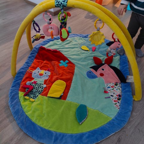 Play&Go leikkimatto/lelusäkki "Worldmap". Oikein siistikuntoinen. Vahvaa kangasta, joka kestää leikkimistä, kuljetusta ja käyttöä. Lelusäkki on avattuna halkaisijaltaan 140 cm. Kun leikit on loppu, se saadaan kurottua kiinni pussiksi reunoissa kiertävän narun avulla. Pussin sisälle mahtuu niin legot, palikat kuin autot ja nuket. Säkki saadaan roikkumaan narusta esimerkiksi seinälle.