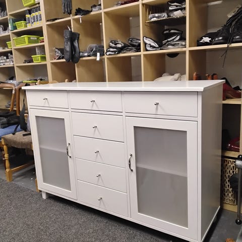 Massiivinen, koristeltu lipasto