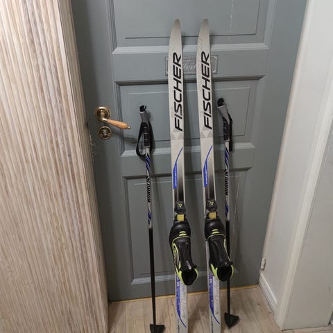 - Sukset 130cm Fischer RCS, pohjassa jonkilainen pitokuvio, side NNN, 15€