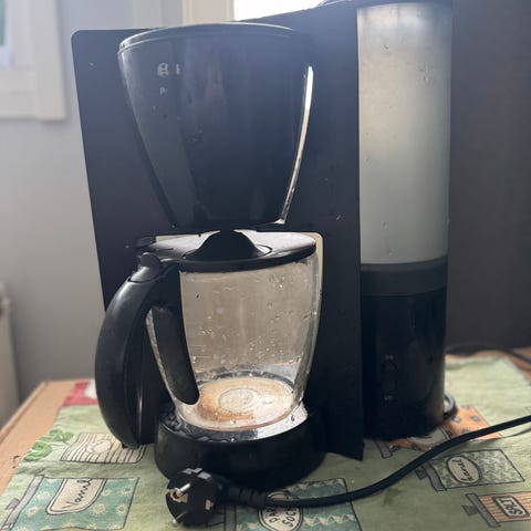Täysin toimiva kahvinkeitin. Vain vesiastian kansi puuttuu.