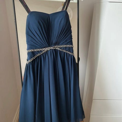 Pari kertaa käytetty tummansininen juhlamekko.