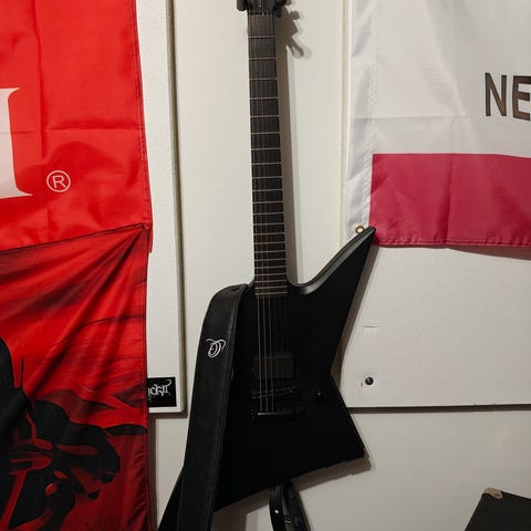 Myyntiin otsakkeen ESP LTD M Black Metal Black Satin sähkökitara. Jäänyt soittamatta, koska käteen paremmin istuvat baritonikutoset ja seiskat.