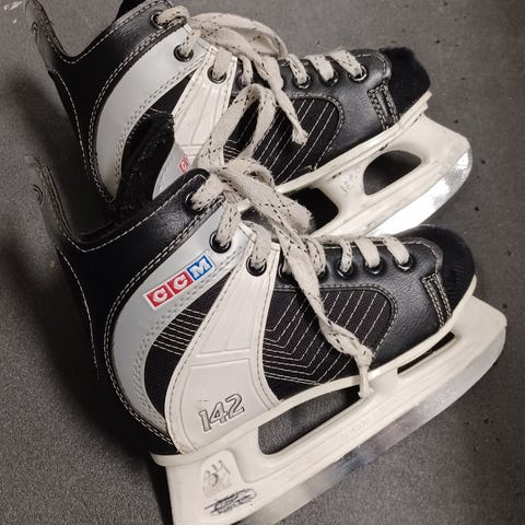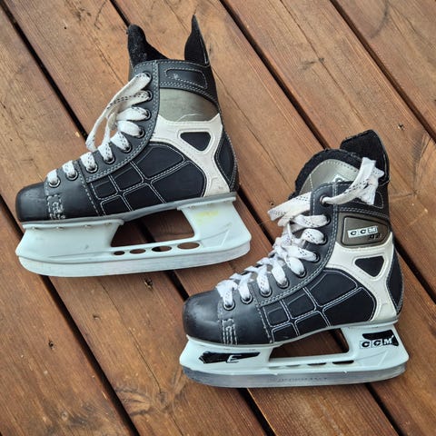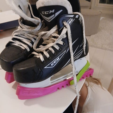 Ostan aktiiviluistelijapojalle CCM hyväkuntoiset luistimet koko 34. Leveämpilestiset paremmat.