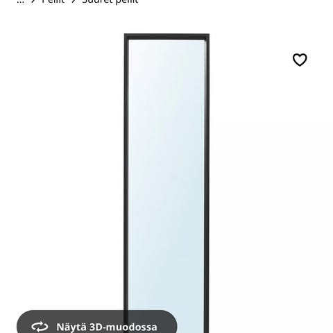 Ikea Nissendal mustakehyksinen 40x150cm hyvässä kunnossa oleva peili.