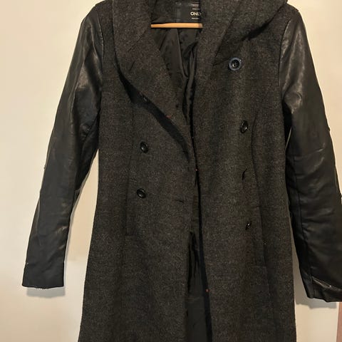 Vähän käytetty ja hyvässä kunnossa oleva musta kangastakki. 158 cm:elle ylettyy polviin asti. Väljä malli s-kokoiselle.