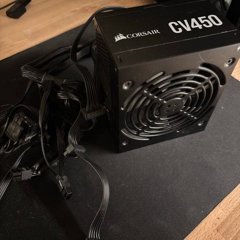 Corsair CX550M 550w modulaarinen ATX-virtalähde. Jäänyt täysin normaalisti toimivana pois käytöstä helmikuussa 2025. Kiinteät piuhat emolle ja prossun lisävirta. Modulaarisena mukaan sata-kaapeli sekä näyttiksen 2x6+2 pinniset PCI-e lisävirtakaapelit. Hyötysuhde 80% plus bronze.