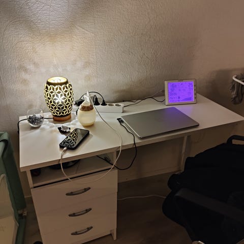 Originally from Jysk, HALSTED gamer desk for sale in very good condition. It have only been used for studying with a desk mat and it have been taken care for very well. The desk has a carbon fiber feeling finnish, but I believe it it wood on the inside, it has a perfectly functional cupholder and headphone holder, which are very convenient.