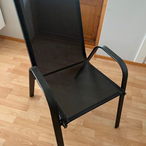 For sale 2 chairs. Very sturdy, metal frame, comfortable mesh seating, stackable. Asking price: 15€/chair