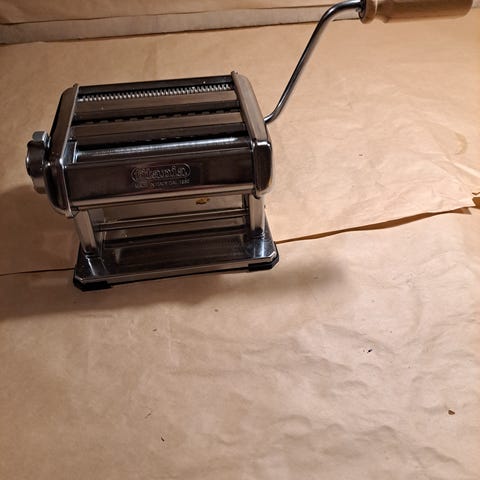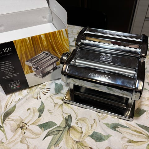 Erittäin hyväkuntoinen, vähän käytetty käsikäyttöinen pastakone italialaiselta laatumerkiltä. Koneella voi tehdä lasagnelevyjä, spagettia ja nauhapastaa. Erikseen ostettavia lisäosia pystyy yhdistämään tähän muiden pastatyyppien valmistamiseksi.