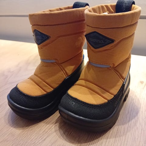 Erittäin siistit välikausikengät. Todella joustava kumipohja. Tuotetietolapuista lähtenyt vähän pintaa pois nimilapun irrottamisen yhteydessä, muutoin moitteettomassa kunnossa. Sisäpituus noin 13,5cm.