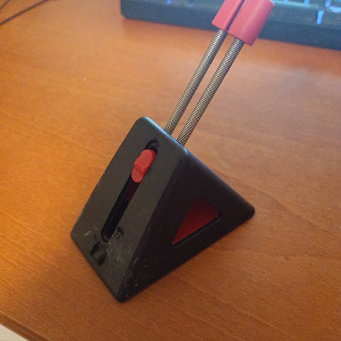 Käytössä ollut johdon pidike hiirelle. Täysin ehjä eikä suurempia käytön jälkiä.