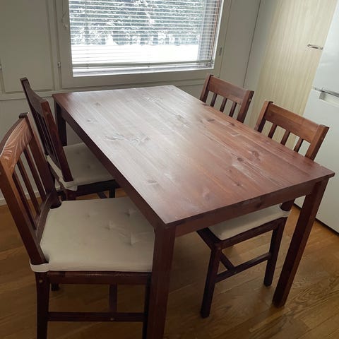 Tukevat mutta molemmissa tuoleissa istuin osassa jälkiä. 50e pöytä tuolit 10e kol