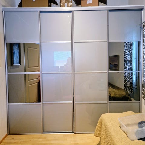 Kaksi liukuovea. Muutaman vuoden vanhat, pois uuden kaapiston tieltä