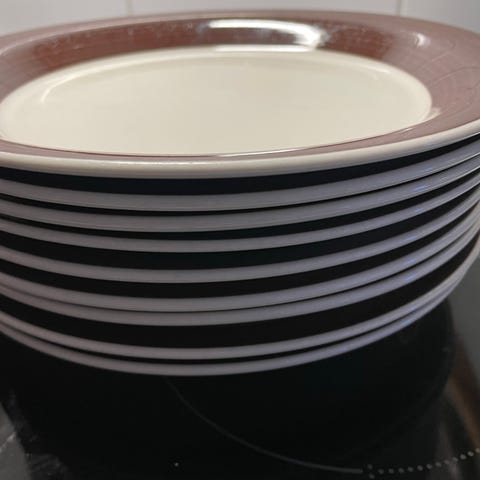 Arabia Inari lautaset, 4 kappaletta, valkoinen väri. Lautaset soveltuvat ruoan tarjoiluun ja arkikäyttöön. Jonkun verran käytönjälkeä joka näkyy kuvissa