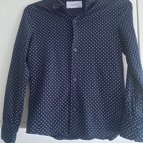 Pitkät hihat, hihansuissa napillinen kalvosin ja pyöristetty helma.