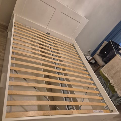 160x200 ikea sängynkehikko jossa 4 tilavaa säilytyslaatikkoa sängyn alla. Joitakin naarmuja ja kolhuja jotka näkyy kuvissa. Valmiiksi purettuna. 2 kiristysruuvia vaatii uusimista, mutta niitä saa tilattua varaosana ikeasta. Vain nouto