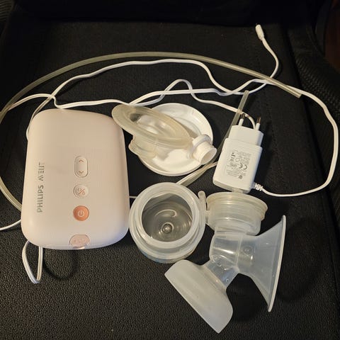 Sähkökäyttöinen rintapumppu. Käytetty, hyvin toimii edelleen.