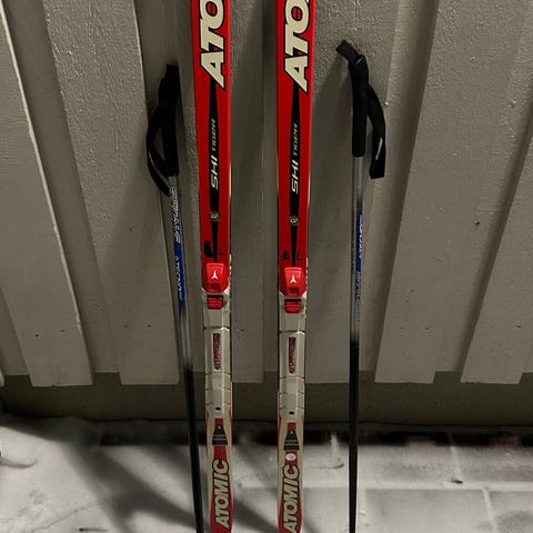 Atomic Shaft 7 Classic hiihtosukset, pituus 120 cm, punainen väri. Olleet kovassa käytössä mutta edelleen toimivat
