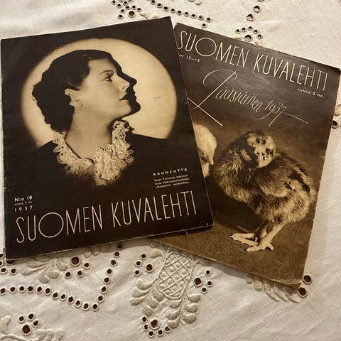 Suomen Kuvalehti-aikakauslehdet. Toinen on vuodelta 1933. Ja toinen on vuodelta 1936. Yhteishintaan 15 euroa.