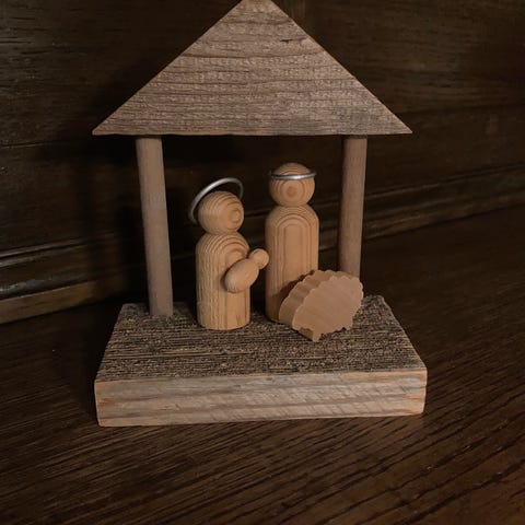 Aarikka seimi. Upea joulukoriste. Kaikki osat tallessa ja kokonaisuus on uuden veroinen. Mitat avattuna 24x24x24.