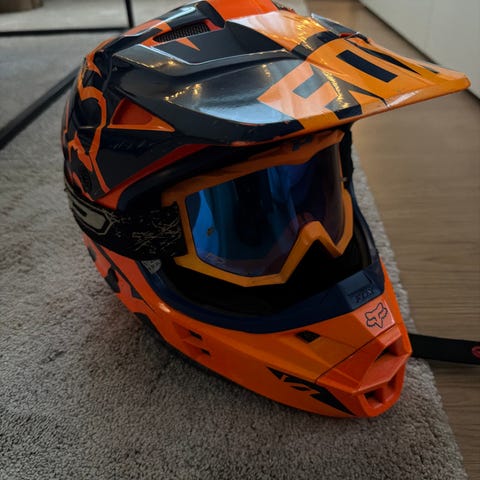 Myydään Raven motocross -kypärä tyylikkäällä kaksivärisellä (harmaa/musta) designilla.