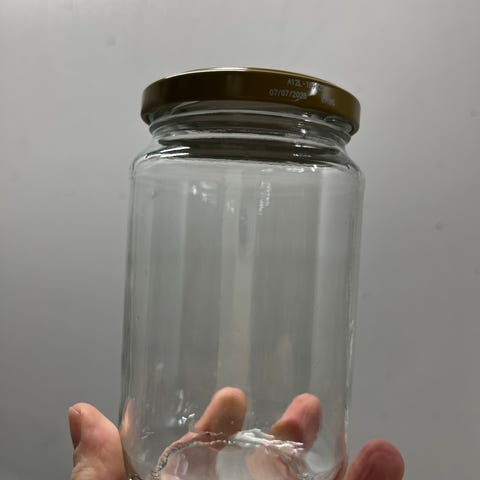 Annetaan kymmenen pienehköä lasipurkkia. Etiketit poistettu ja purkit pesty, parissa liimajäämiä (ks. kuva 3). Nouto Pohjois-Leppävaarasta.