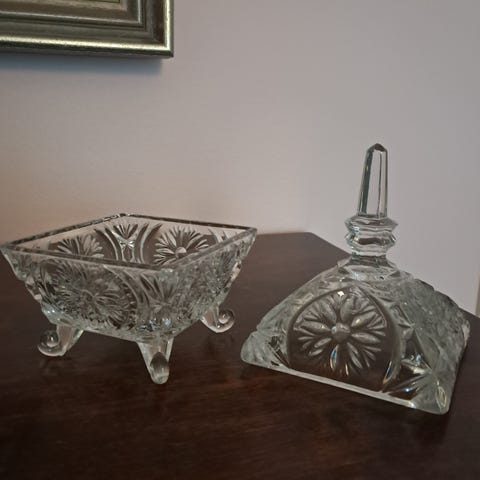 Todella kaunis ja tyylikäs kristalli korurasia/rasia kannella. Erittäin siisti eleganttinen rasia.