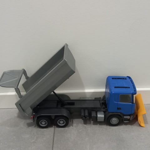 Emek Scania hieno 5-akselinen maansiirtoauto kipillä. Leikkiauto on täydellinen kopio oikeasta mallista vilkkuineen, peileineen ja lavoineen.