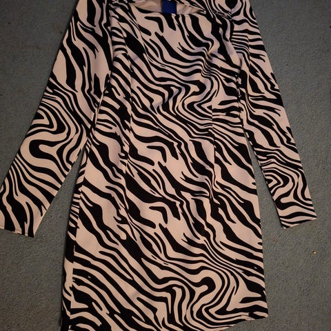 Myydään kirjavamekko, edessä rintojen kohdalla halkio. Kunto hyvä.