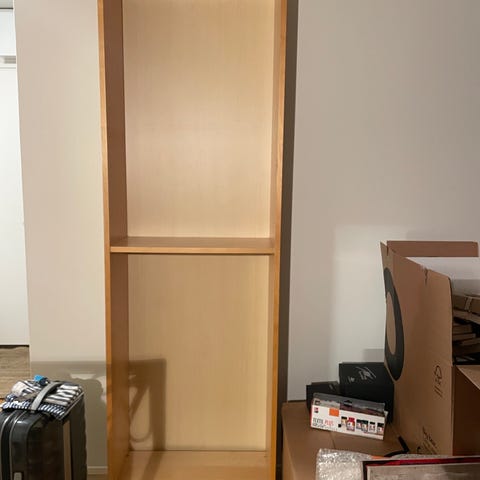 Siisti kirjahylly kapeaan tilaan.