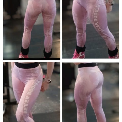 Nämä on hieman erikoisemmat treenihousut joissa läpinäkymätön kangas joka vaihtaa väriä liikkeen ja kehonmuodon mukaan. Tekstit värjätty suoraan kankaaseen (ei kulu pois kovassakaan käytössä) Keski-korkea vyötärö, lahkeen pituus 7/8