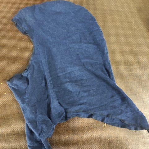 Ruskovilla kypärämyssy, kokomerkintä 5-8v, mutta ollut käytössä jo aiemmin, reikiä, annetaan
