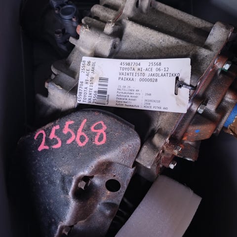 Myydään -02 vm. pitkästä nelikosta lähtöisin oleva jakolaatikko ja etu ja takakardaanit. Ei kuulunut muita ylimääräisiä ääniä kuin takakardaanissa yksi väljä ristikko mutta jakolaatikko oli hiljainen. Kilsat 480tkm. Kuiva oli ulkopuoli paikallaan ollessa mutta irrotuksen jälkeen valui osa öljyistä pihalle välistä jonka kardaani tiivistää. Hinta koko setille 500e/järkevä tarjous. Sijainti kuhmossa. Myös koko hiace osina, josta eri ilmoitus täällä.