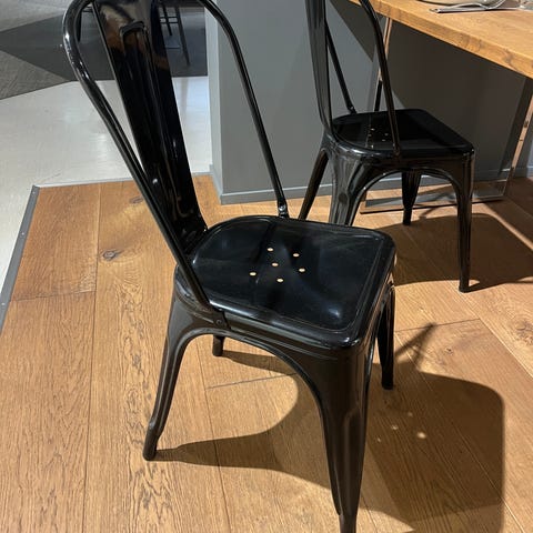 Myydään hyväkuntoinen musta Tolix Tuoli A, kiiltävä teräs .Mitat