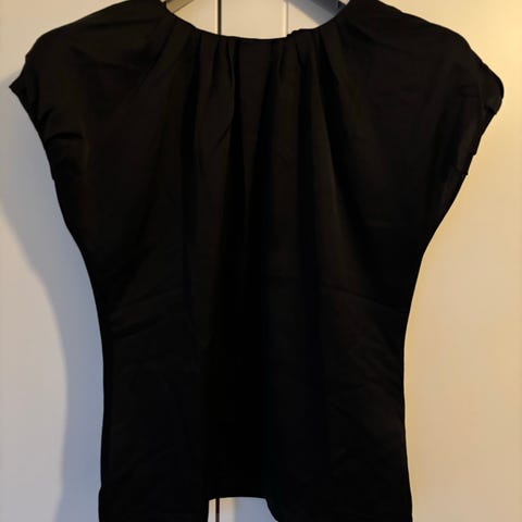 Siisti mutta kuvassa ryppyinen paitapusero. Selkäpuoli hengittävää materiaalia ja etupuoli kauniisti laskeutuvaa kiiltävämpää materiaalia