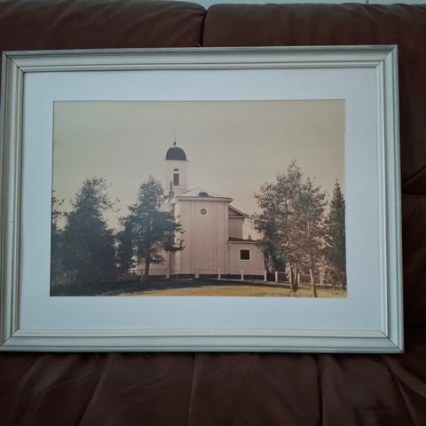 Haapajärven kirkosta taulu. Aika vaalea, kauniit kehykset. 38cm leveä ja 31cm korkea.