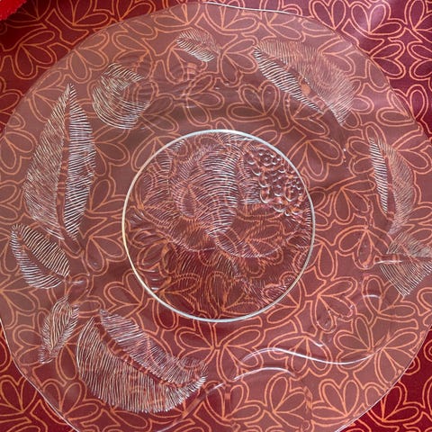 Nuutajärven Pioni sarjan tarjoilulautanen halk31cm,leipälautaset halk17cm ja nekka.