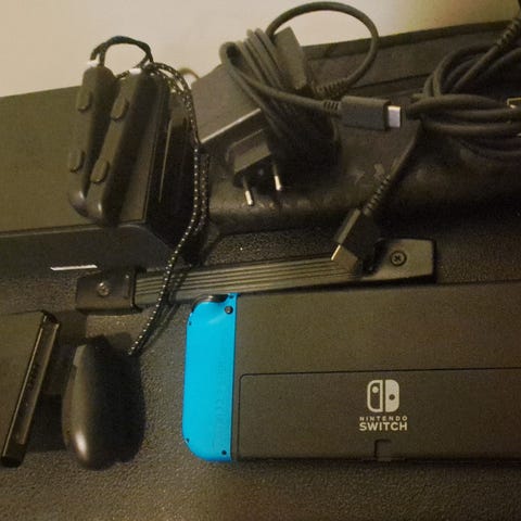 Nintendo Switch OLED -pelikonsoli sininen ja punainen Joy-Con