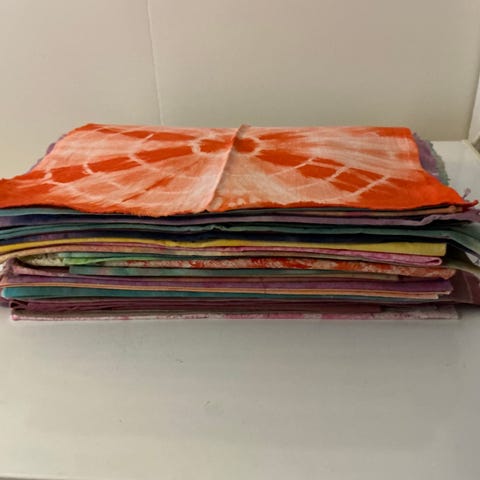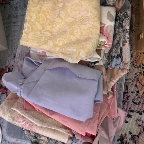 Tilkkutöihin kankaita. Laatikollinen. Kaikki kerralla. Ostaja maksaa postikulut