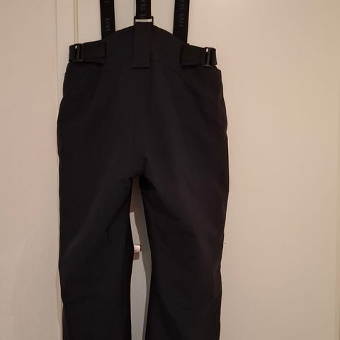 Yhden talven laskuköytössä olleet toppahousut henkseleillä. 152cm.