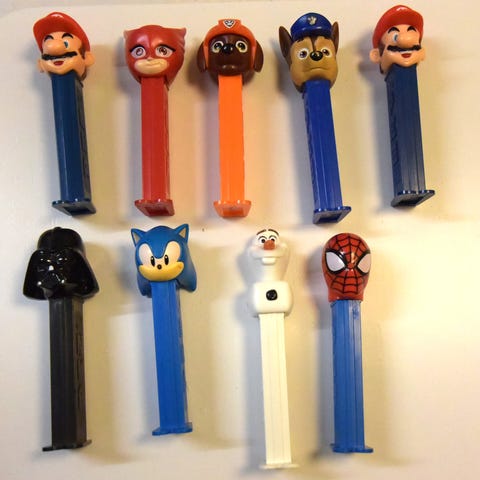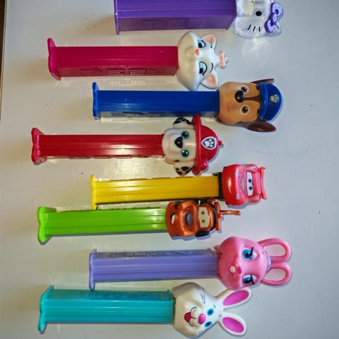 Myydään iso erä PEZ-annostelijoita, yhteensä noin 22 kpl. Mukana useita tunnettuja hahmoja, mm. Disney, Minions, Mario, animaatio- ja eläinhahmoja.