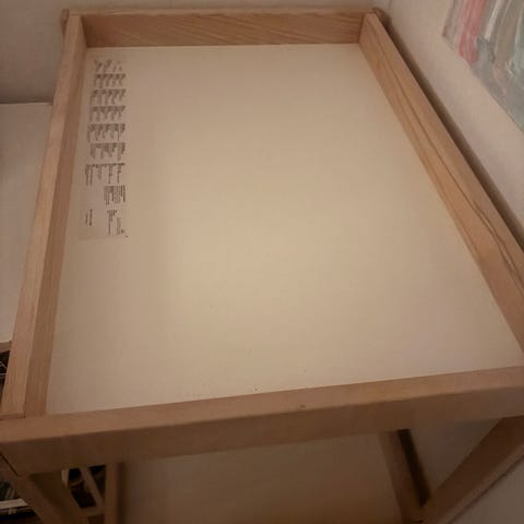 Pöydän alemmalla tasolla on maali hieman kupruillut mutta se on vain visuaalinen haitta.