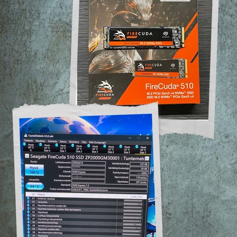 Myydään käytetty Seagate FireCuda 530 2TB Gen4 M.2 NVMe SSD.