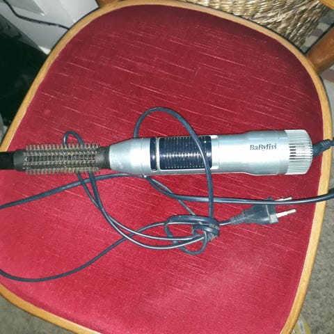 Kuvan kiharrin. Hyvä käytetty kunto. Pientä käytönjälkeä rungossa, kihartimen pinnat ehjät. Mukaan silikoninen suoja.