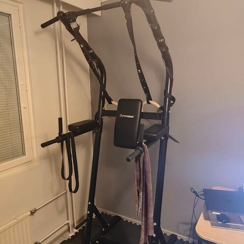 FitNord Dippi- ja leuanvetotelineellä teet tehokkaasti dippipunnerruksia, leuanvetoja sekä jalkojen nostoja. Monipuolinen treeniväline kotisalille!