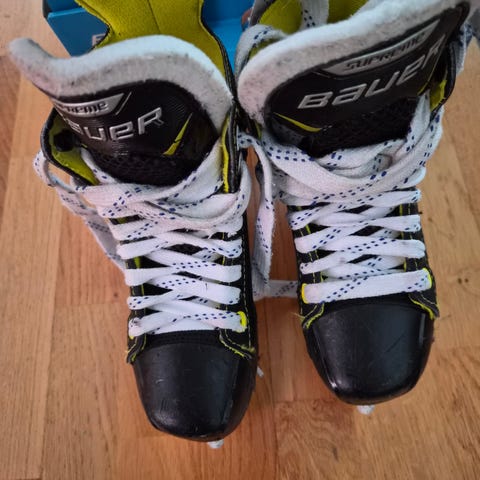 Hyväkuntoiset Bauer Supreme Lightning Ti luistimet. Koko Y13.5 / 33. Pohjallisen mitta 20,7cm.