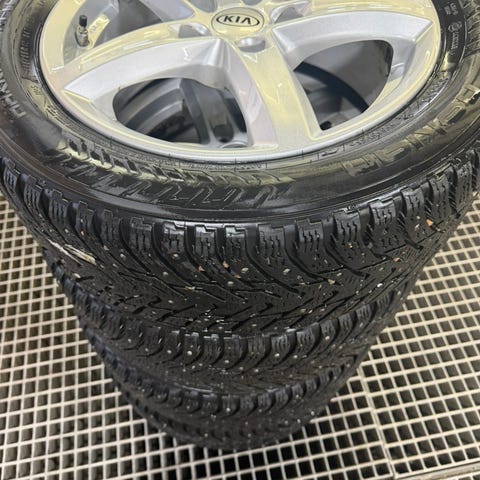 Kia Sportagen uudenveroinen nastarengassetti, ajettu alle 1tkm. kaikki nastat tallella ja vanteet virheettömät, vanteissa paineanturit, sopii muihinkin esim Hyundai, Mazda. ET 42.5