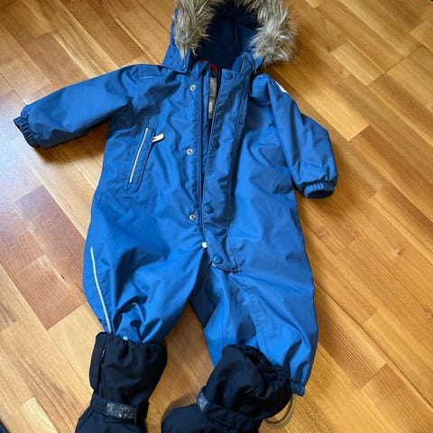 REIMATEC talvihaalari. Koko 74. Irrotettava huppu. Vetoketju ja nepparikiinnitys. Lahkeiden lumilenksut moitteettomat