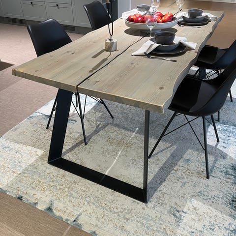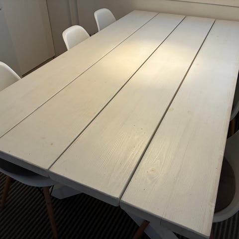 Myydään lankkuruokapöytä. Pöytä on 140cmx90cm.